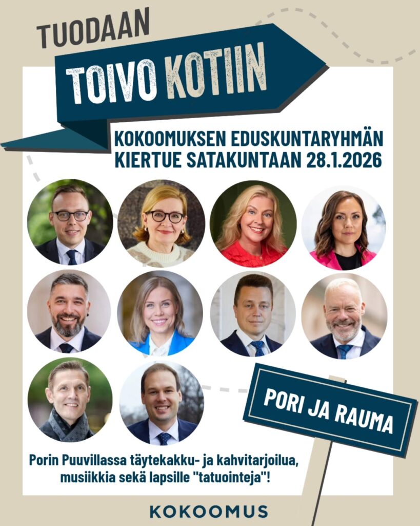 TOIVO KOTIIN! Kokoomuksen eduskuntaryhmän kiertue Satakuntaan 28.1.2026!