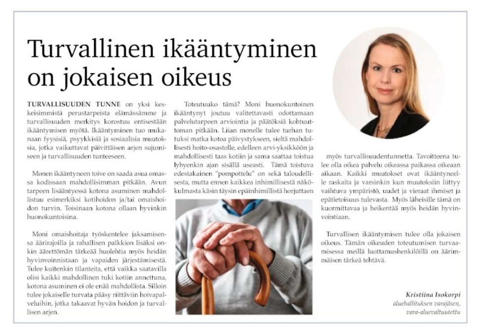 Elämme historiallisia hetkiä. Koko hyvinvointivaltiomme perusta muuttuu tammikuun aluevaalien myötä. Moni pelkää palvelujen heikentyvän ja kustannusten nousevan sosiaali-, terveys- ja pelastuspalvelujen siirtyessä pois kunnallisesta päätösvallasta. Se riski onkin varmasti olemassa, …